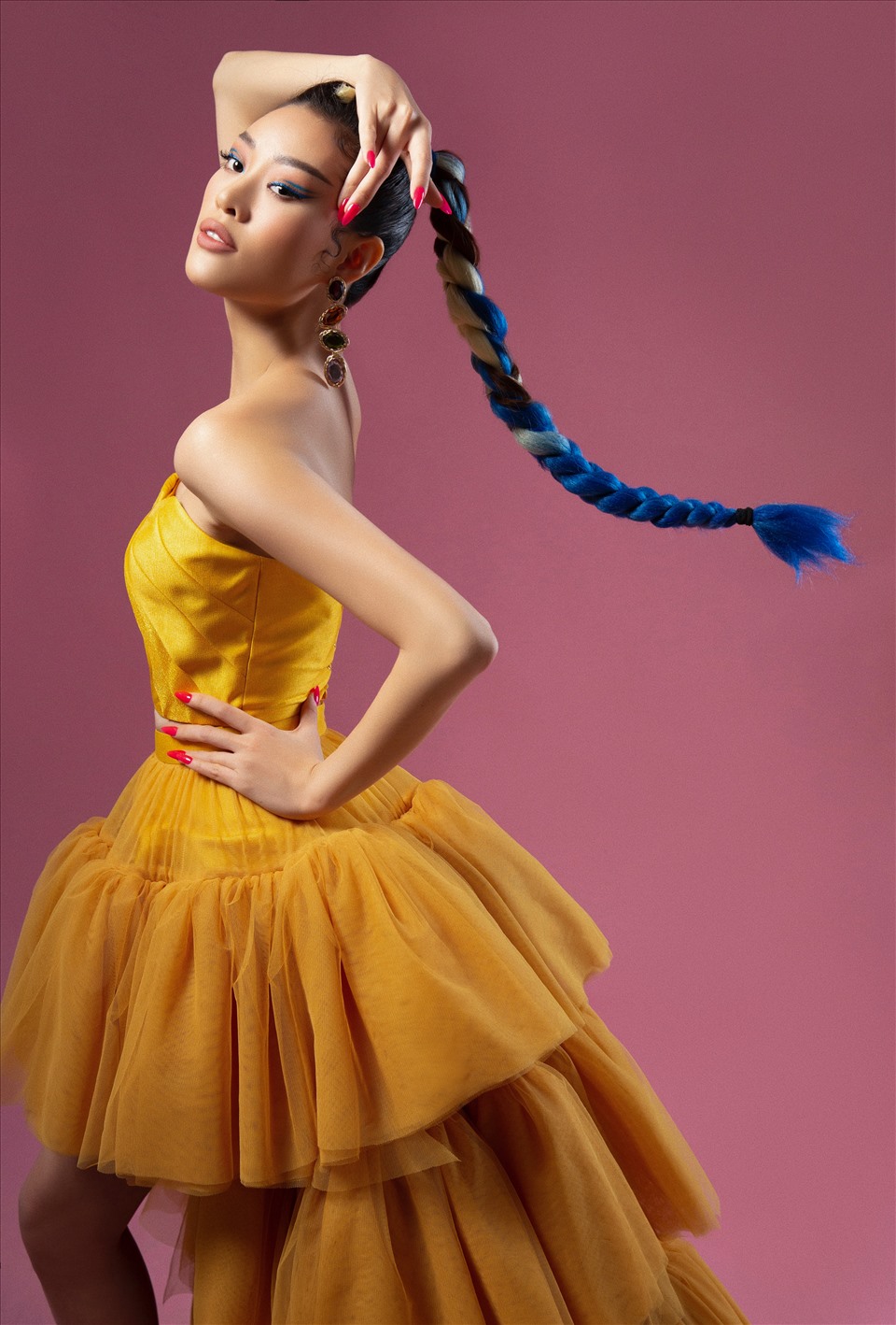 Lấy cảm hứng từ màu sắc, Hoa hậu Khánh Vân kể câu chuyện về cuộc sống với những sắc thái khác nhau, màu sắc phản ánh tâm trạng và màu sắc là chất liệu điểm tô cuộc sống mỗi ngày. Ảnh: Hà Kino.