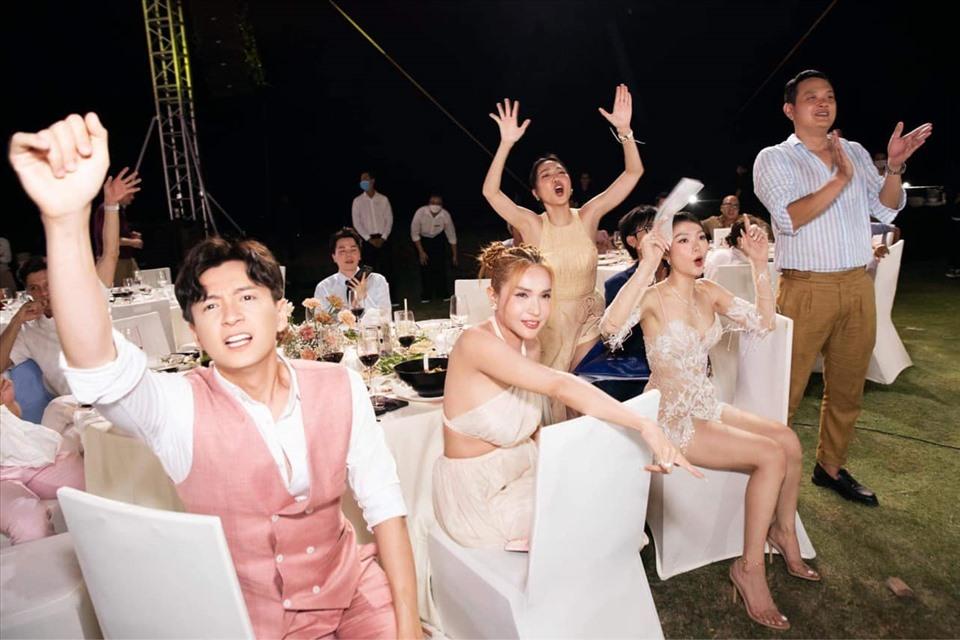 Dàn khách mời đình đám gây chú ý khi chia sẻ những khoảnh khắc hài hước, vui nhộn, thậm chí gây sốc tại lễ cưới. Trấn Thành chia sẻ hình ảnh mặc quần đùi xanh quậy tưng bừng ở lễ cưới, Khả Ngân bị xô ngã khỏi sân khấu, Jun Phạm bế Diệu Nhi ướt sũng dưới bể bơi...