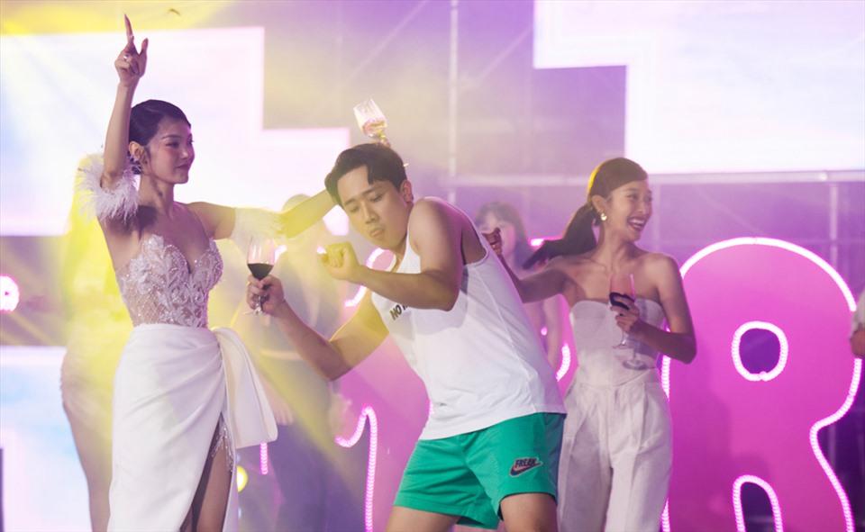Trấn Thành, Khả Ngân, Đông Nhi "bung xõa" trên sân khấu bên cạnh cô dâu. Ảnh: NVCC.