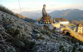 Do nhiệt độ giảm xuống dưới 0 độ C, sáng sớm 18/1, đỉnh Fansipan (thị xã Sa Pa, Lào Cai) đã xuất hiện sương muối phủ trắng núi rừng.