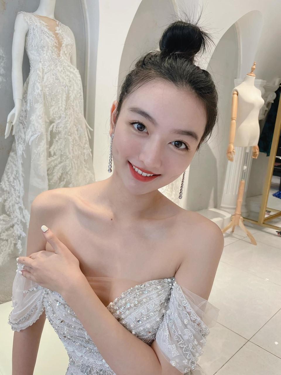"Em rất biết ơn ban tổ chức đã cho em cơ hội vào đến chung kết để em có được những trải nghiệm, kinh nghiệm học hỏi từ cuộc thi với một đứa mà vốn dĩ "thi hoa hậu" chưa bao giờ nằm trong suy nghĩ của em. Nhưng vì lý do cá nhân nên không thể theo cuộc thi đến cuối cùng, em rất lấy làm tiếc", Lương Hồng Xuân Mai chia sẻ sau khi rời cuộc thi. Ảnh: MWVN