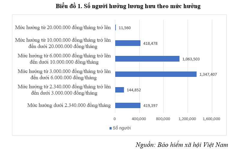 Trong khi đó, phần lớn người nghỉ hưu hiện nay thuộc nhóm có mức hưởng dưới mức hưởng bình quân, cụ thể, phân nhóm số người hưởng lương hưu, trợ cấp bảo hiểm xã hội và trợ cấp hằng tháng theo mức hưởng như sau: