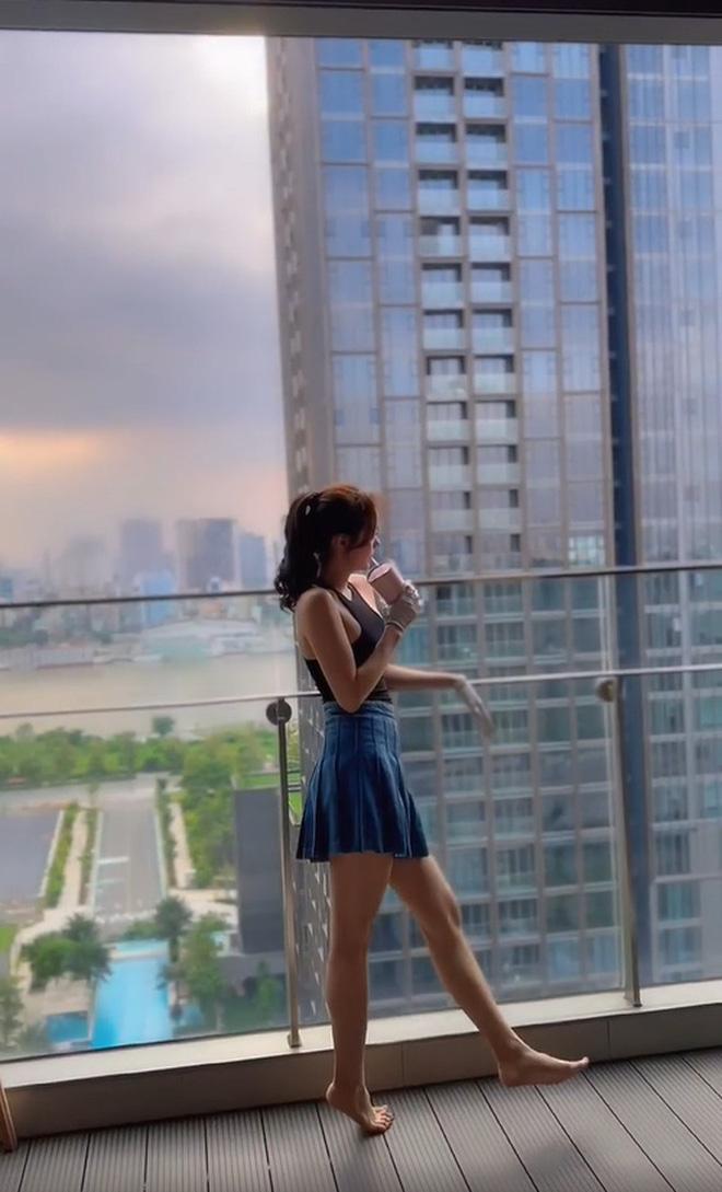 Trong thời gian gần đây, "Bé Heo" mới tậu thêm căn hộ cao cấp rộng 125 m2 với giá gần 20 tỷ đồng. Từ phòng ngủ, Minh Hằng có thể quan sát cả thành phố bao gồm cả toà Landmark 81 và Bitexco từ trên cao.
